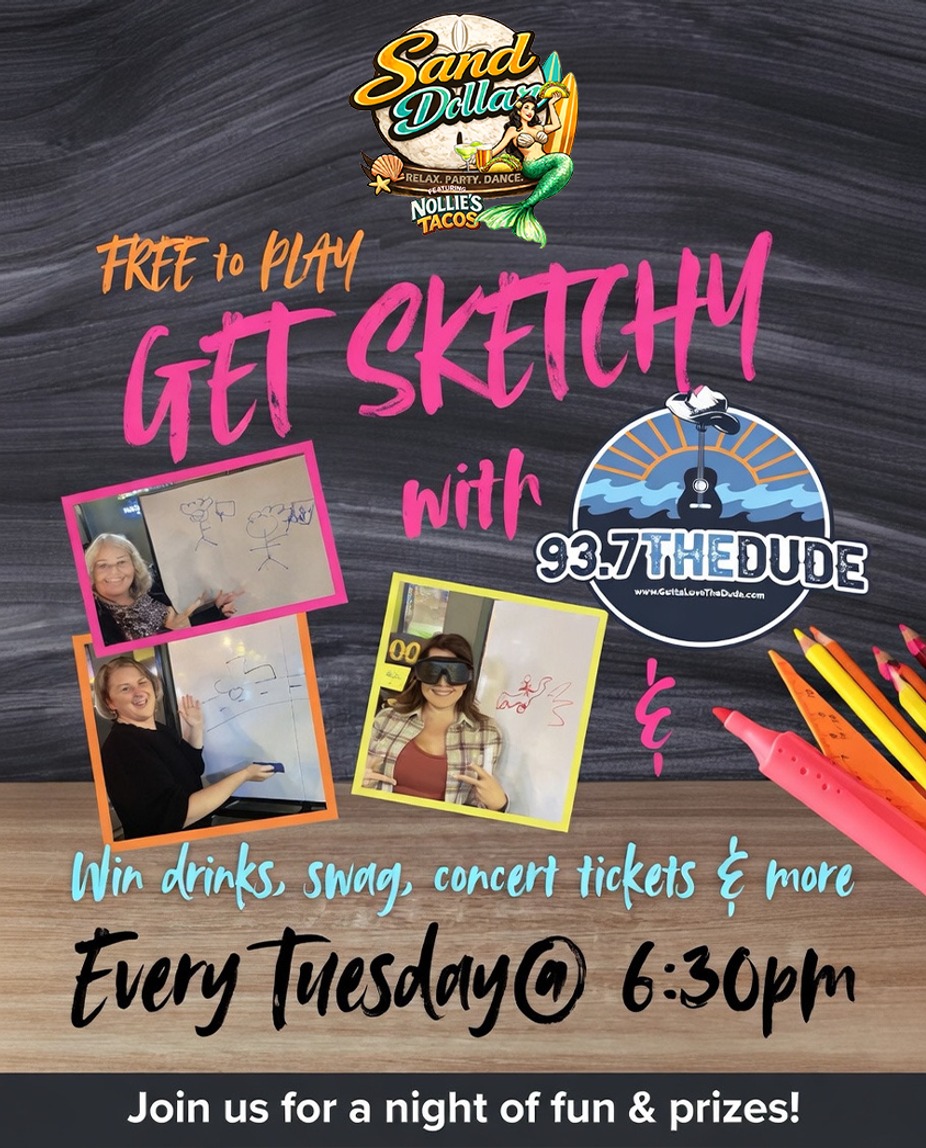 “Get Sketchy” at The Sand Dollar is where your inner artist (or chaos gremlin) gets a mic, a marker, and zero expectations of perfection. It’s loud, it’s silly, it’s the kind of joy we forget we’re allowed to have.